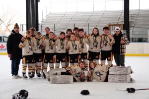The championship game was a fitting end to a remarkable season. The Jr. Pens faced a rematch with the Southtowns Stars on the RiverWorks main rink and came out flying — Michael Whiteduck (unassisted) and Mason Kelly (unassisted) gave the Jr. Pens a 2–0 lead heading into the third period. But the Stars weren’t done, clawing back to tie the game 2–2 and force overtime. With 1:23 remaining in OT, Mason Kelly potted the unassisted winner to clinch the championship and cap off the 2025–26 season with a 4–0–1 tournament record. Gavin Kravulski was outstanding in goal throughout, and Kelly was the undisputed Player of the Game with the clutch overtime heroics.